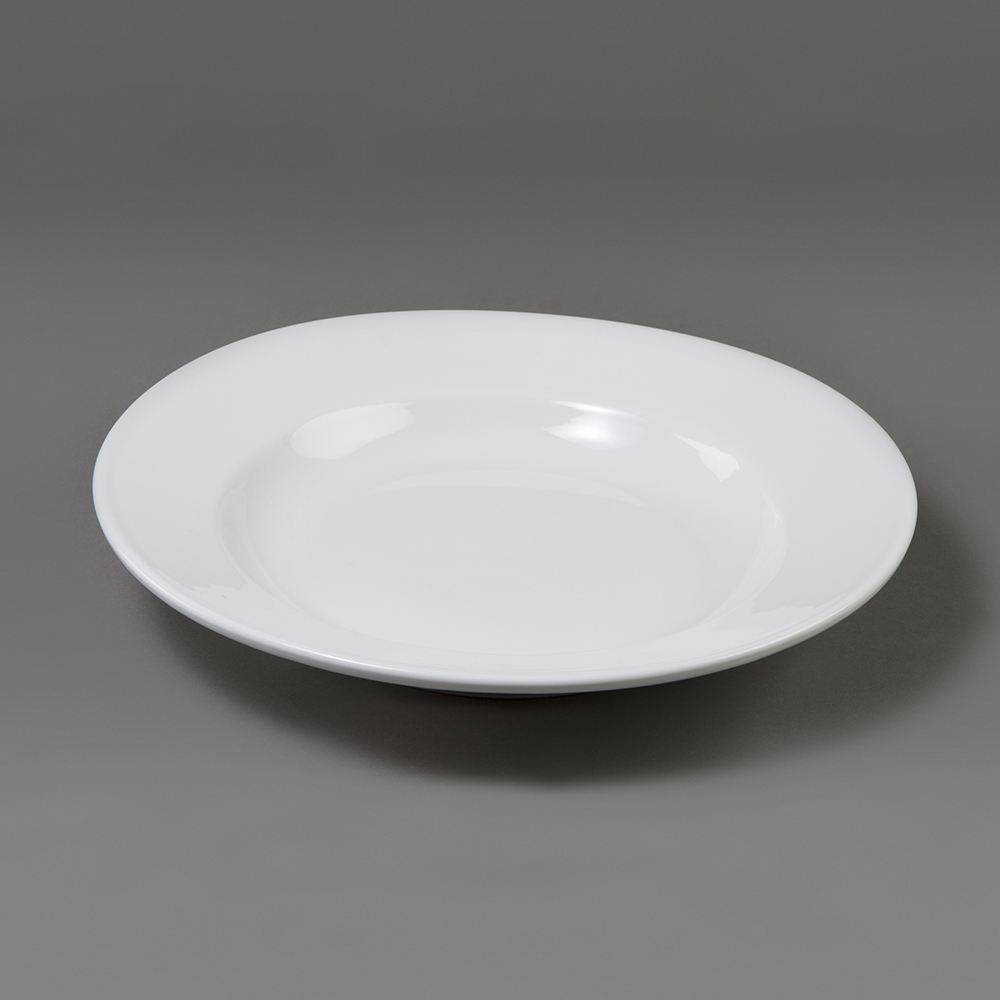 This coupe-shaped, modern, white 14" bowl is perfect for main course servings.This coupe-shaped, modern, white 14″ bowl is perfect for main course servings.