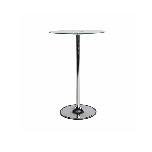 Sleek and modern, this glass high top table has a wide chrome base. Add stools for a comfortable place to relax and chat or keep solo for a more lively environment.